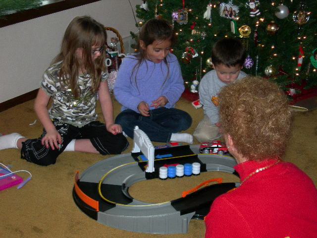 One of the gifts turns into a big hit. Even some of the bigger 'kids' couldn't resist. Vroom, vroom, vroom!
